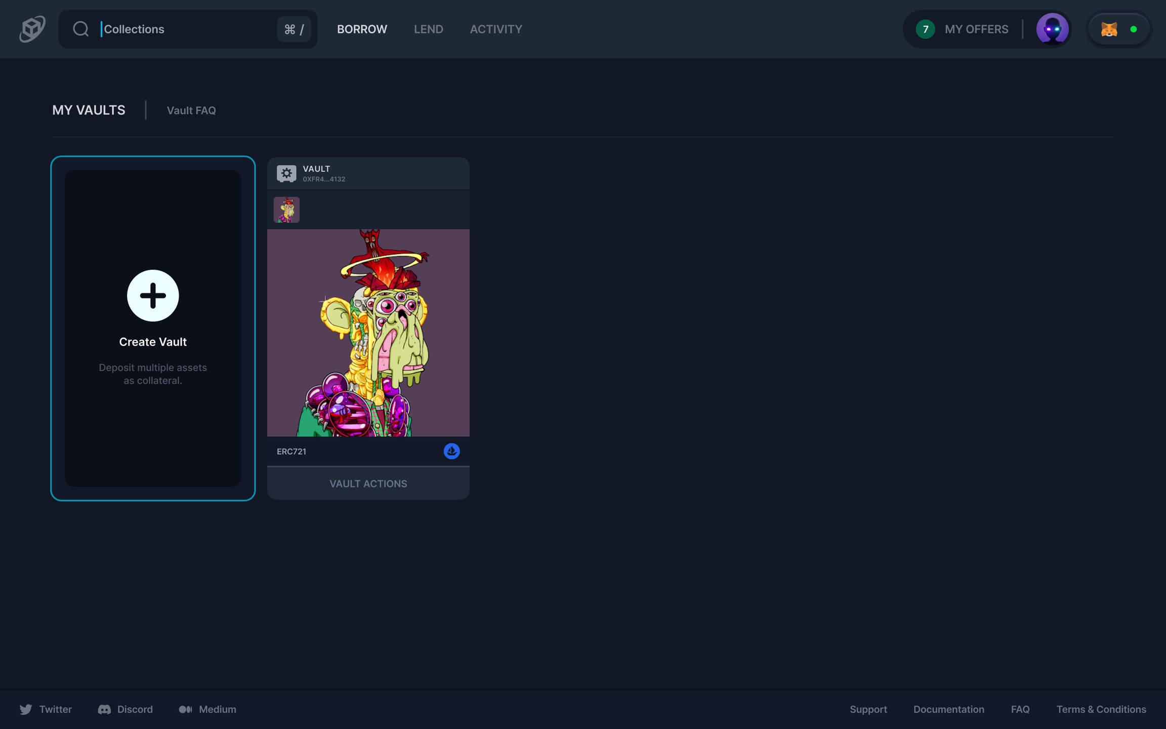 5. 链上交易完成后,会有成功通知确认交易已经上链。 Vault 或 NFT 将被转移到贷方的钱包中。