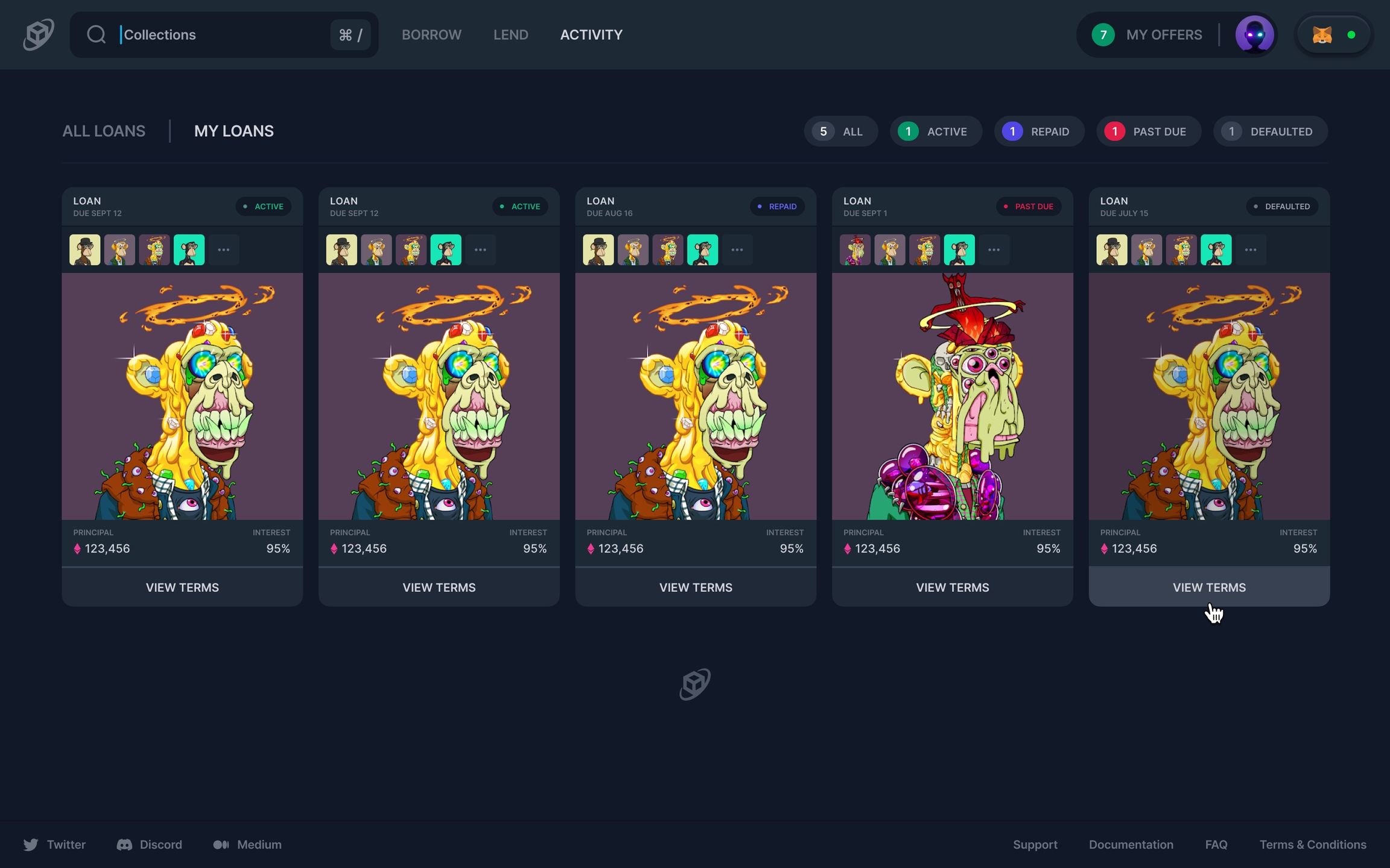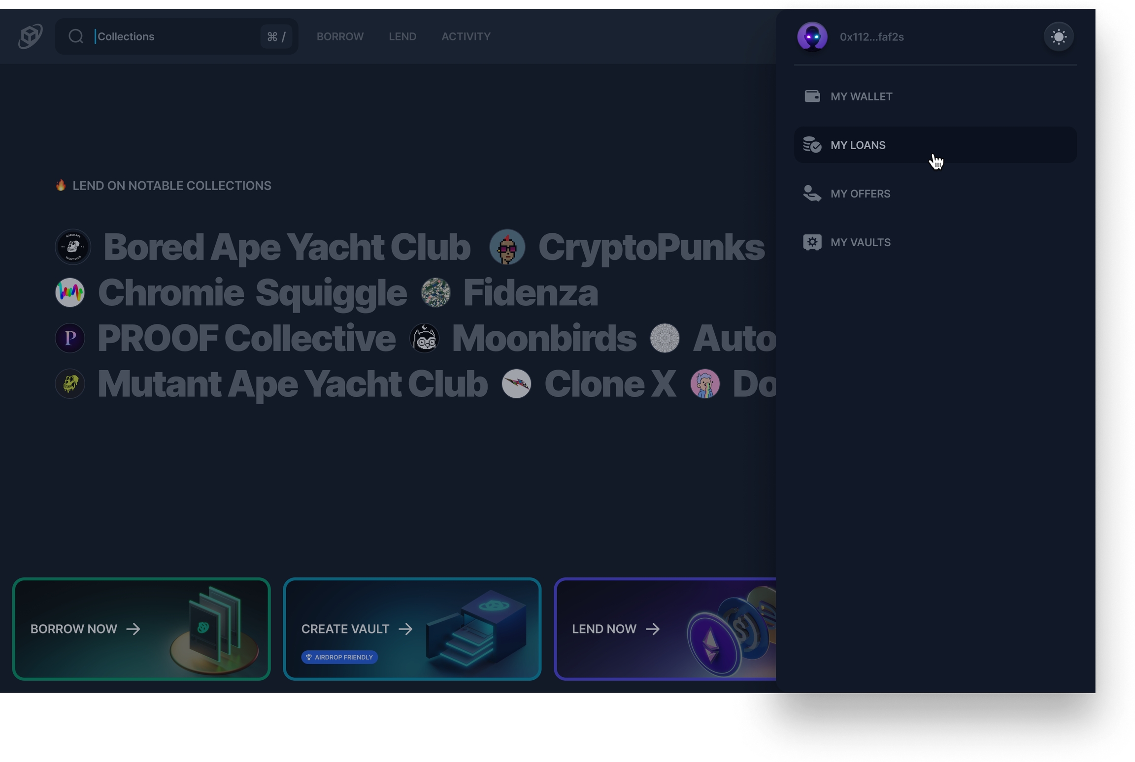 连接钱包后,贷方应使用顶部导航栏并选择“My Profile”菜单,然后选择“My Loans”部分。